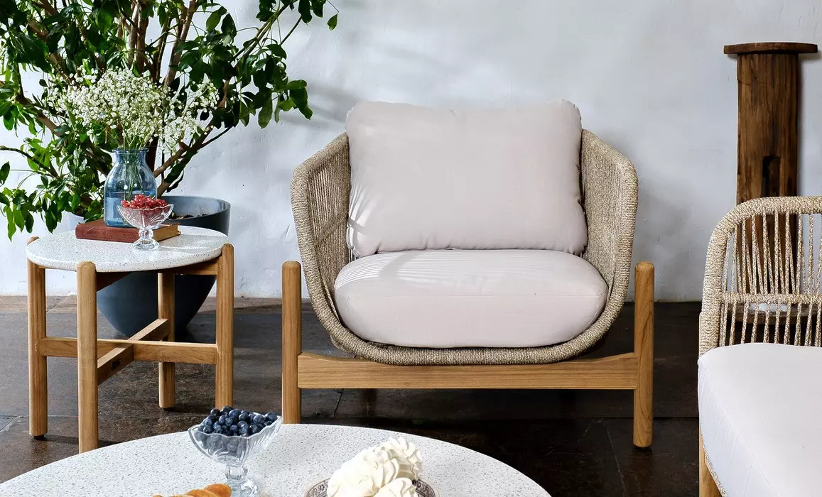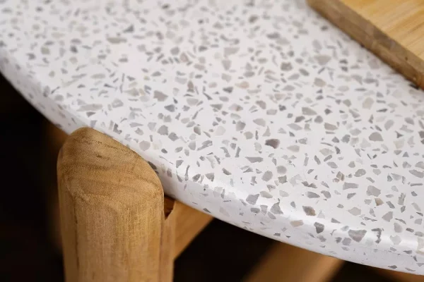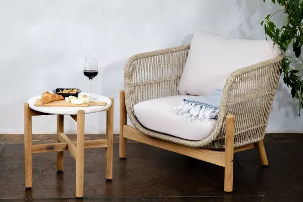 Функциональный и элегантный боковой стол из коллекции TALARA — идеальное дополнение к садовой мебели. Сочетание натурального тика и столешницы из керамогранита TERAZZO обеспечивает прочность, долговечность и современный внешний вид.