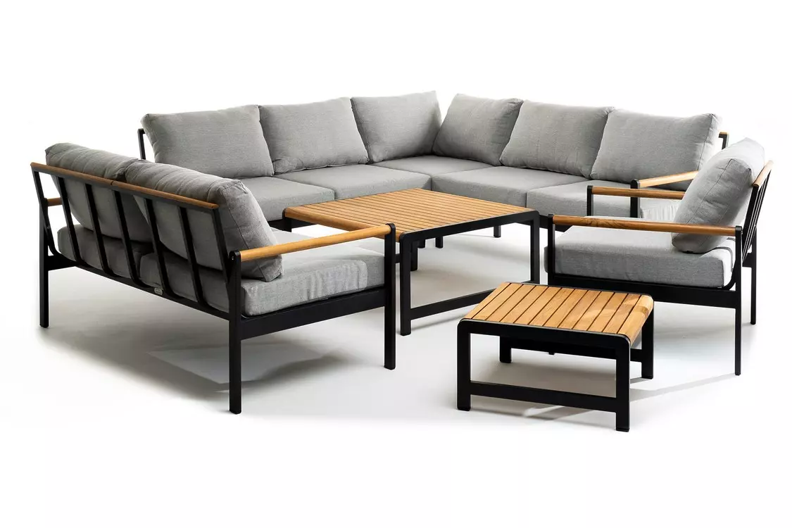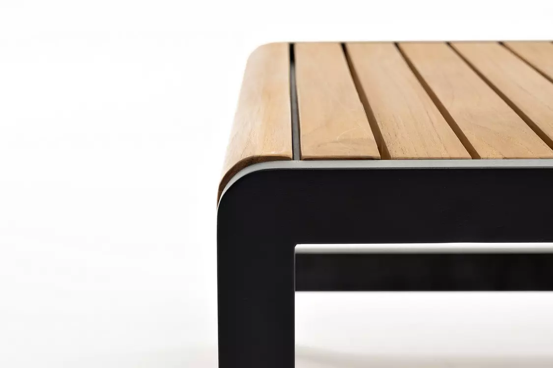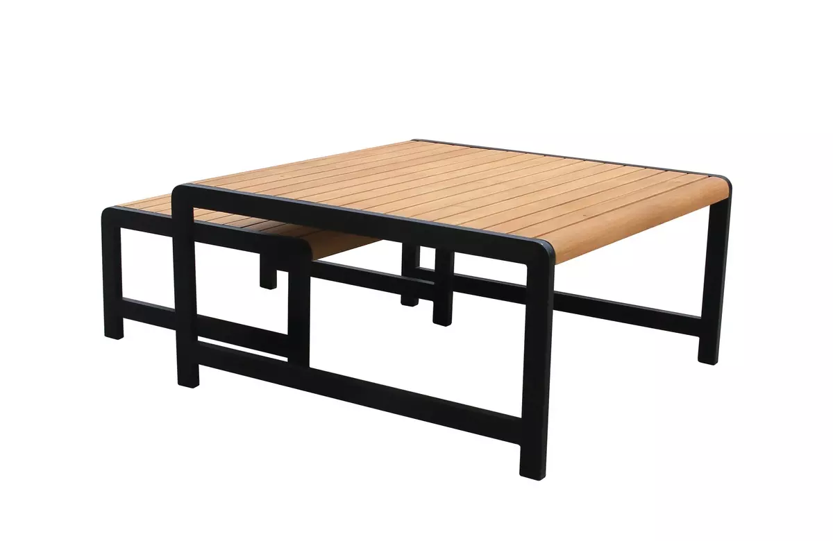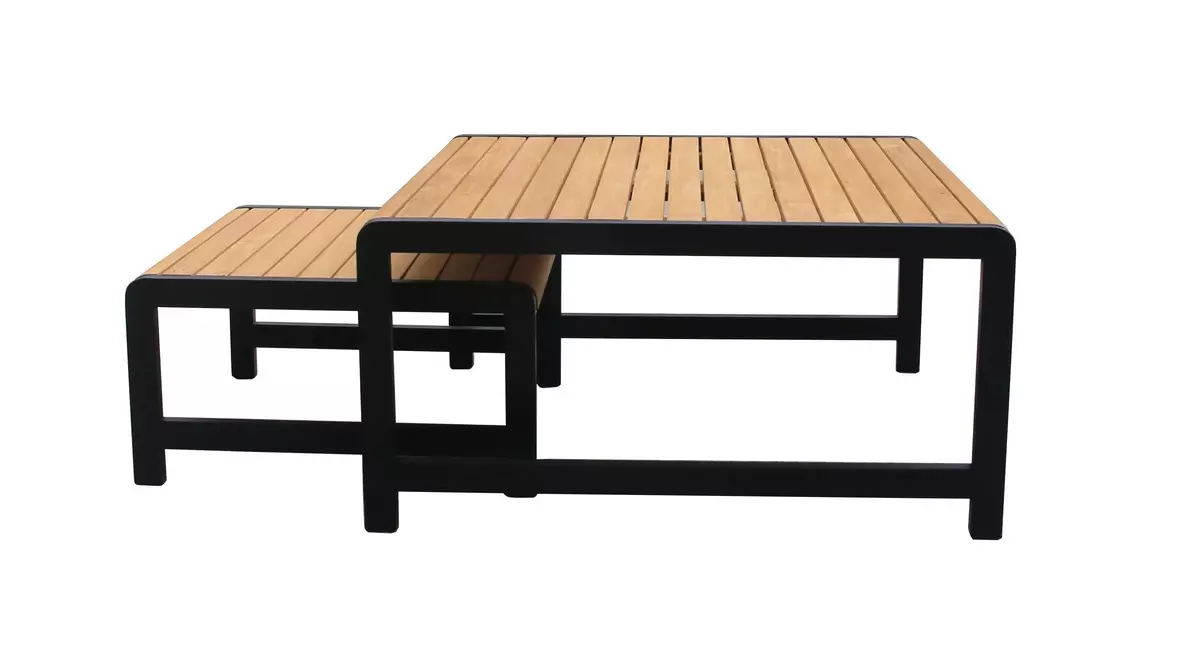 Современный комплект садовой мебели из коллекции MAYA — сочетание лёгкого алюминиевого каркаса и благородной древесины тика. Набор включает большой и малый столы, которые идеально подходят для обустройства зон отдыха на террасе, веранде или в саду.