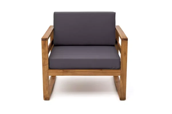 Элегантное кресло из коллекции BOOKA сочетает природную красоту древесины акации с современными технологиями обработки. Модель обеспечивает комфорт в зонах отдыха на открытом воздухе, отличаясь долговечностью и стильным внешним видом.