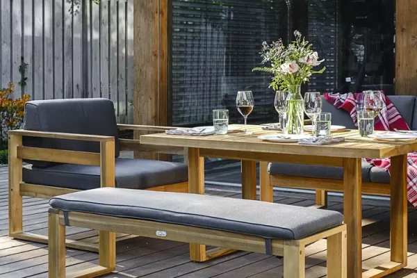 Модель из коллекции BOOKA — сочетание природной прочности древесины и лаконичного современного дизайна. Подходит для обеденных зон на открытом воздухе: террас, веранд, садовых площадок, лаунж‑зон в кафе и отелях.
