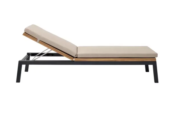 Стильный шезлонг из коллекции ALTO для отдыха на открытом воздухе. Сочетает алюминиевый каркас, вставки из массива акации и комфортные подушки.
