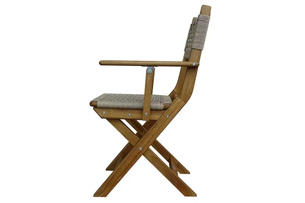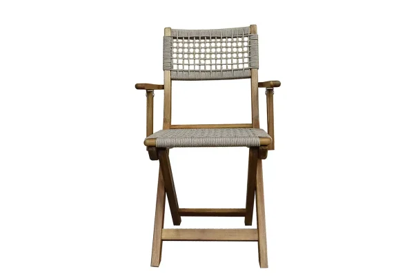 Стильный садовый стул с эргономичным дизайном, созданный для комфортного отдыха на свежем воздухе. Модель сочетает в себе практичность складной конструкции и элегантность натуральных материалов.