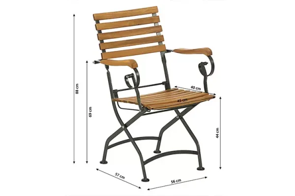Элегантный складной стул из коллекции LATA — гармоничное сочетание стального каркаса и массива акации. Модель воплощает современный взгляд на классическую садовую мебель: лаконичный дизайн, эргономичность и практичность делают её идеальным решением для террасы, балкона или садового пространства.