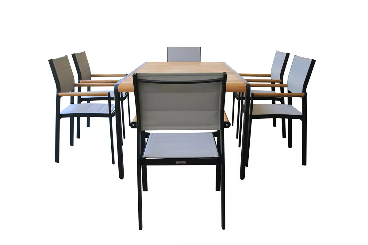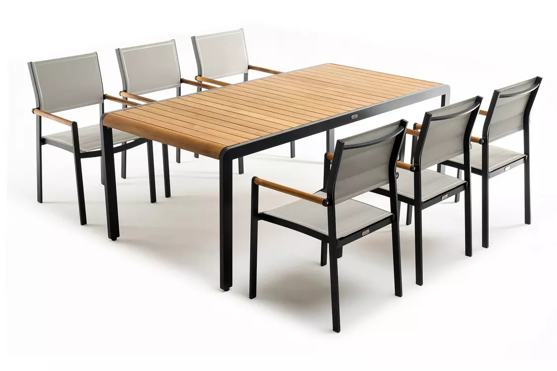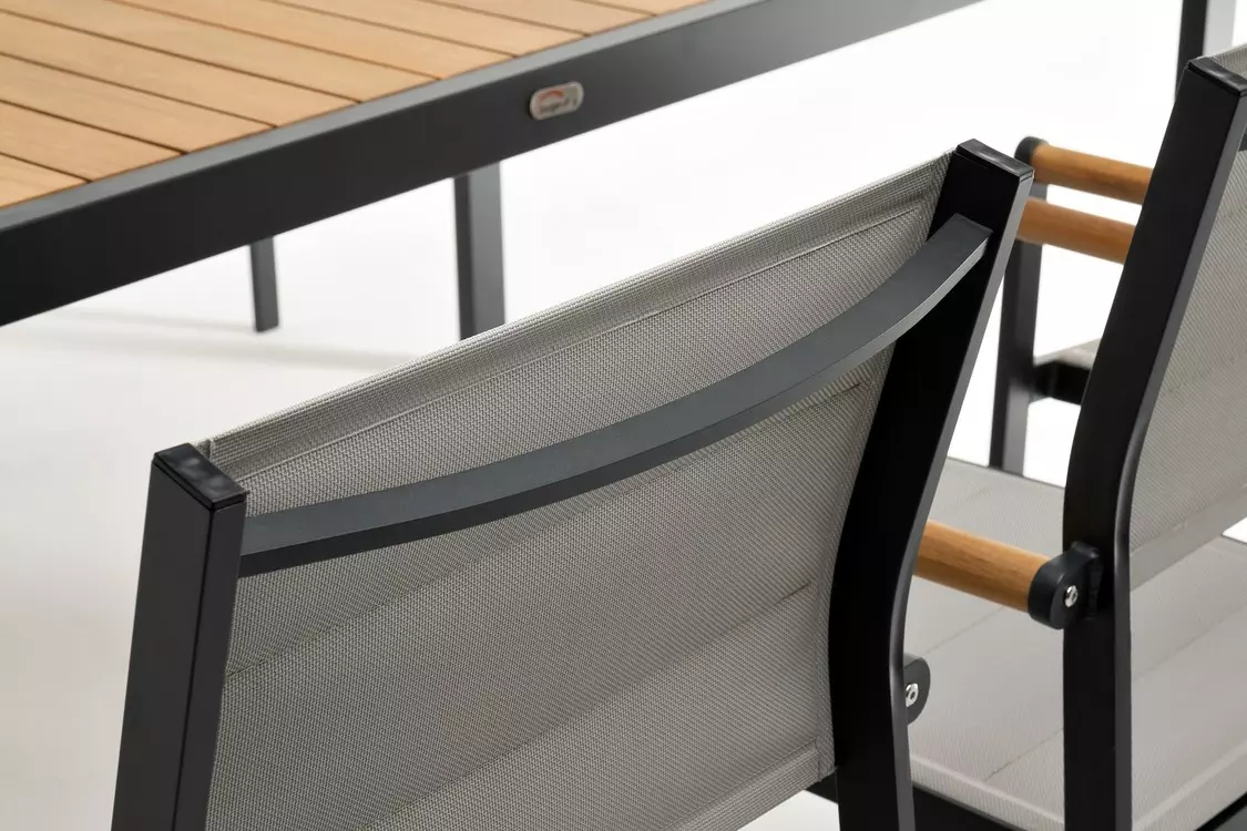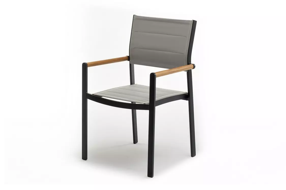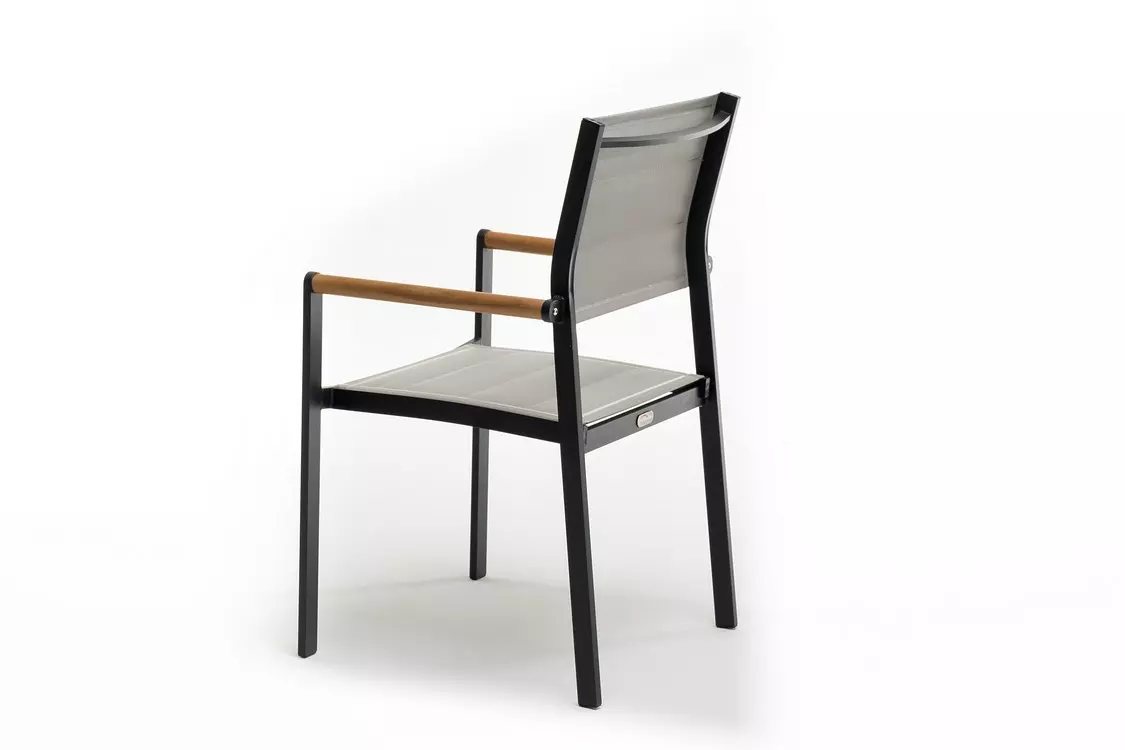 Современный садовый стул из коллекции MAYA сочетает технологичный алюминиевый каркас с элементами из натурального тика. Модель отличается эргономичностью, прочностью и стильным дизайном, подходящим для обустройства зон отдыха на открытом воздухе.